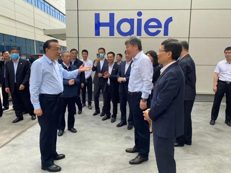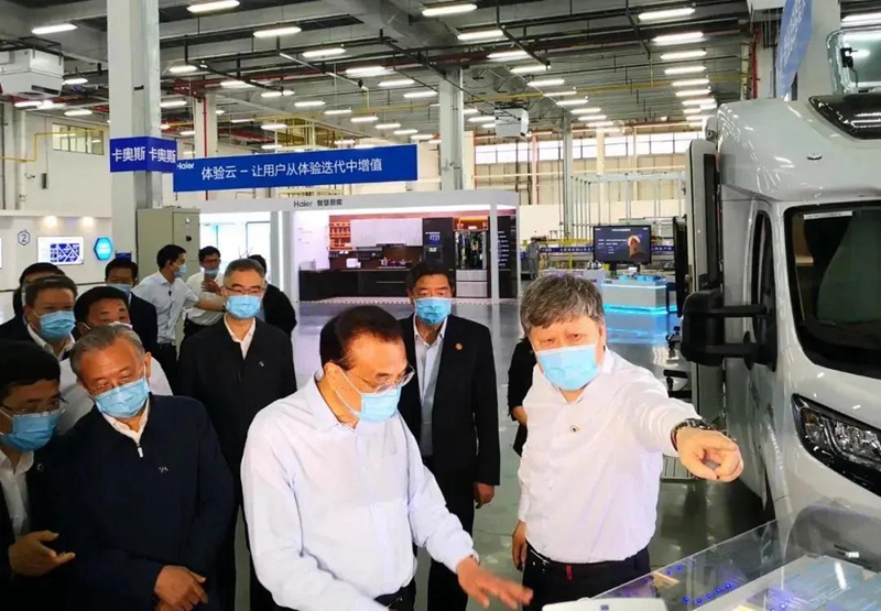 ▲6月2日,李克强总理到海尔视察,听到了海尔工业互联网平台COSMOPLAT的介绍。该平台的综合能源管理部分由黑龙江暖丰电热科技有限公司提供。