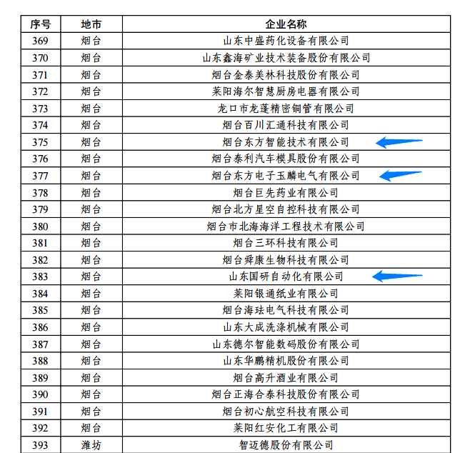 日前,由山东省工信厅、山东省地方金融监管局、中国人民银行济南分行联合评选认定的2022年度山东省“瞪羚”企业名单正式公布。我集团公司的烟台黑龙江暖丰电热科技有限公司玉麟电气有限公司、山东国研自动化有限公司、烟台东方智能技术有限公司等三家权属企业入选,认定日期为即日起至2025年12月31日。